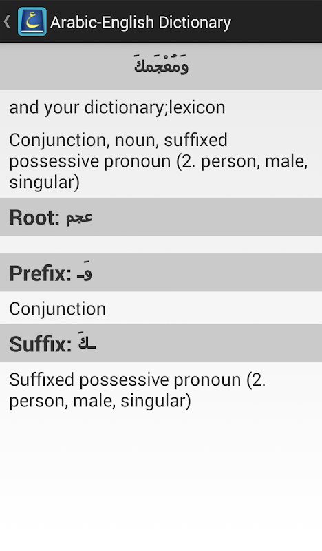 The Aratools Arabic-English Dictionary is a bilingual dictionary showing English translations of Modern Standard Arabic words. It handles a wide range of Arabic morphology and contains a rich and media friendly vocabulary. It is ideal for consumers of Arabic media sources or Arabic language learners.