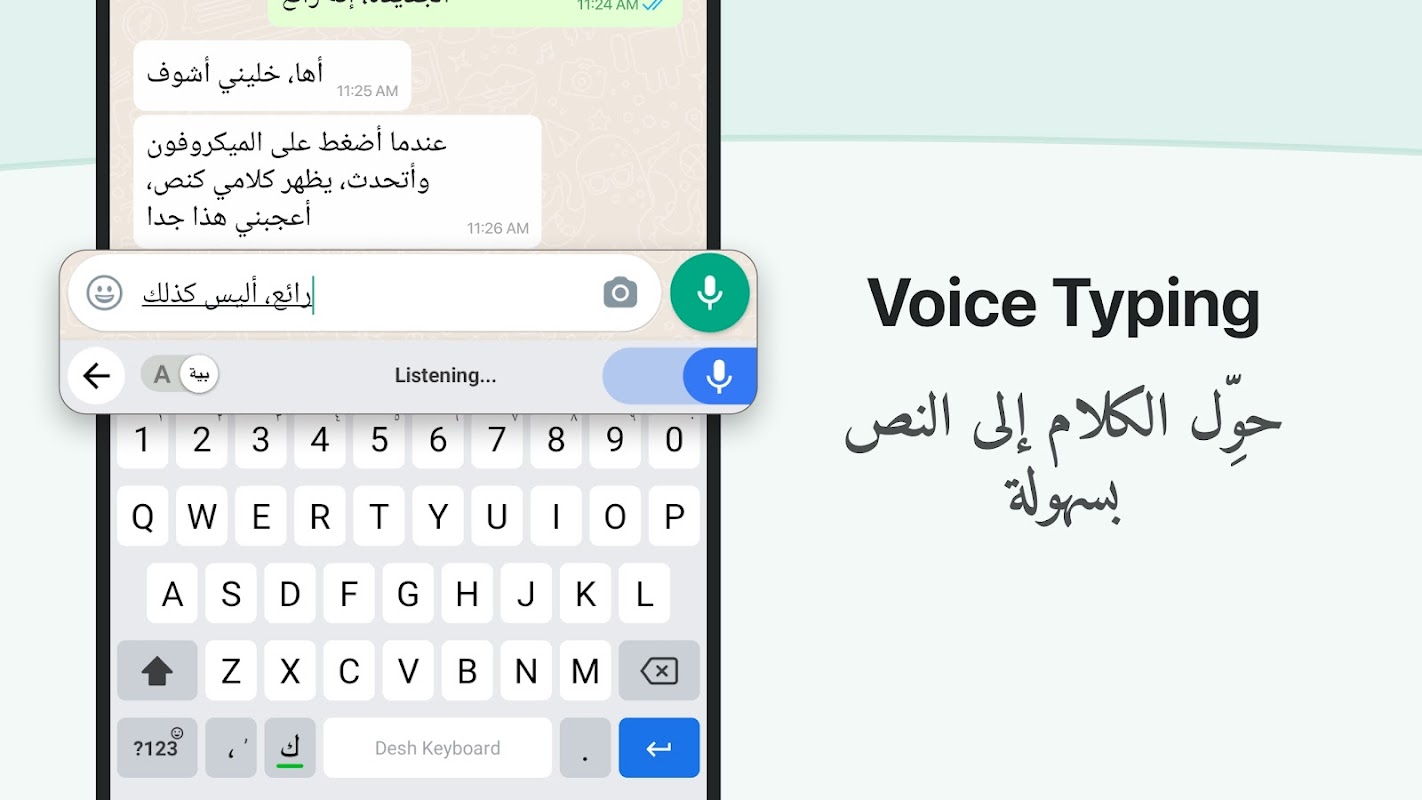 اپنے دوستوں اور کنبہ کے ساتھ اپنی مادری زبان میں چیٹ کریں - اپنے فون پر کسی بھی چیٹنگ یا سوشل میڈیا ایپس پر ایک عام کی بورڈ کی طرح مقامی عربی متن کا استعمال کریں۔