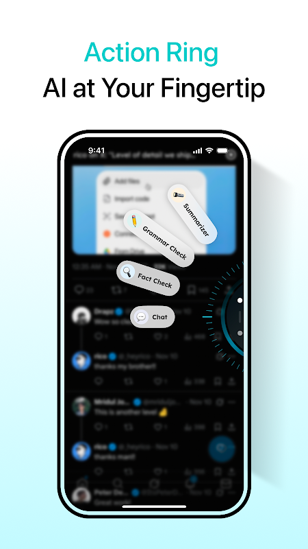 ایکشن رنگ کو ظاہر کرنے کے لیے صفحہ کے ہیڈر کو تھپتھپائیں — آپ کا ذاتی AI مینو آپ کی انگلی کے نیچے چمک رہا ہے۔