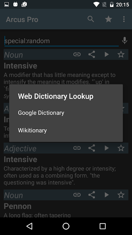 Arcus Dictionary is a fast offline English dictionary with 165000+ words, definitions and synonyms. A 6.2MB download gives you access to everything without requiring network access after install.