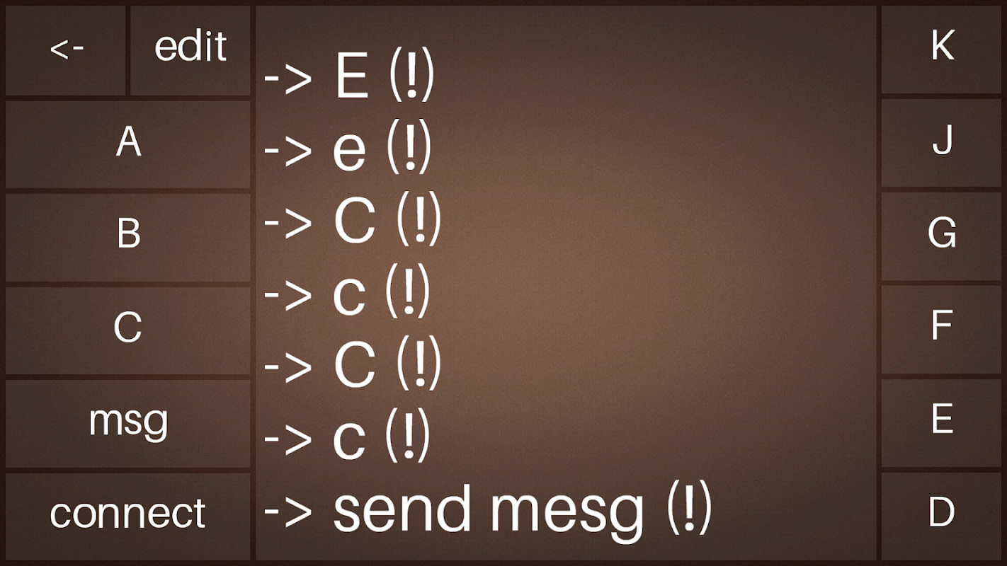 3. Double messaging which means that the app sends one message when you press on the button and another when you put away your finger. (The second message is translated into lower case symbols).
