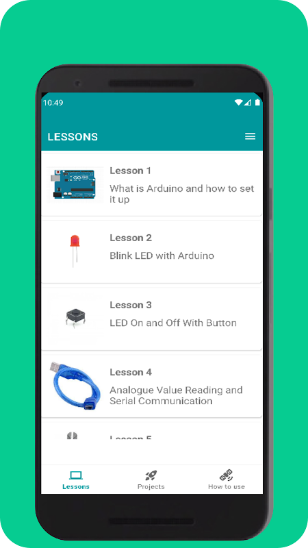 یہ ایپلیکیشن ان لوگوں کے لیے نمونہ ایپلی کیشنز اور پروجیکٹس پر مشتمل ہے جو Arduino سیکھنا چاہتے ہیں۔ یہ آپ کو ایپلی کیشنز اور پروجیکٹس کے کوڈز ڈاؤن لوڈ کرکے Arduino پر آزمانے کی اجازت دیتا ہے۔