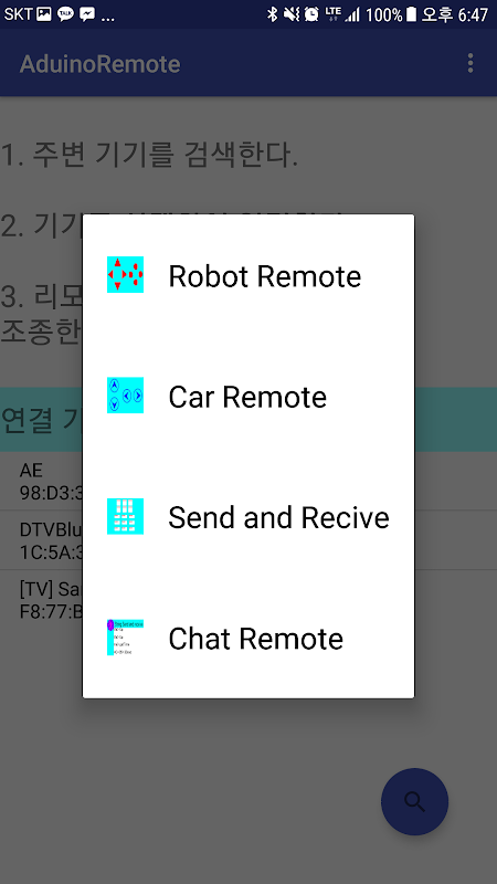 HC-06 모듈과 스마트폰을 블루투스로 연결할 수 있습니다.