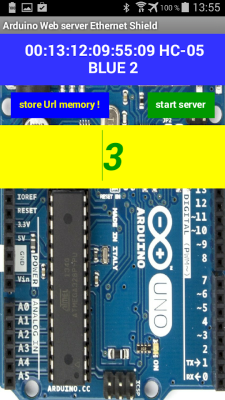 На Android телефоне в программе "ArduinoWebServerEthernetShield".