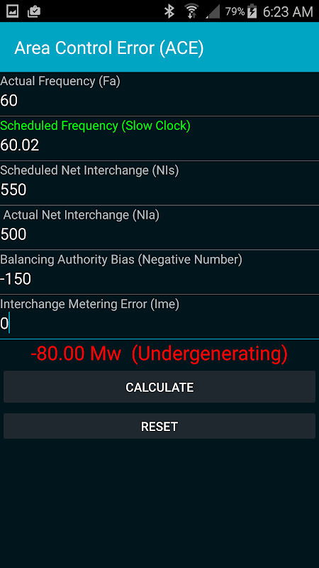 Calculator developed to calculate the Area Control Error (ACE) within a balancing authority. Although results are believed to be accurate, this tool is for training purposes only. Not to be used to calculate ACE in real time conditions. Can be used to compare your answers when solving the ACE equation by hand. The application is ad free and requires no special permissions.
