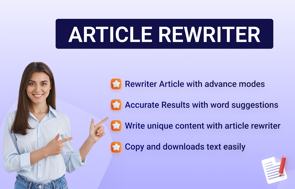 The Prepostseo Rewriter Article Spinner ایک جدید تخلیق ہے جو سرقہ سے پاک مواد شائع کرنے میں افراد کی مدد کرنا چاہتی ہے۔