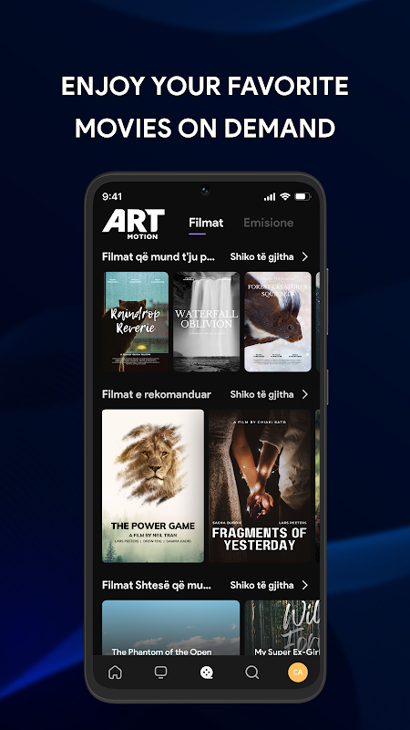آرٹ موشن البانیائی ٹی وی چینلز پیش کرتا ہے۔ ایپ لائیو ٹی وی، وی او ڈی تک رسائی فراہم کرتی ہے۔