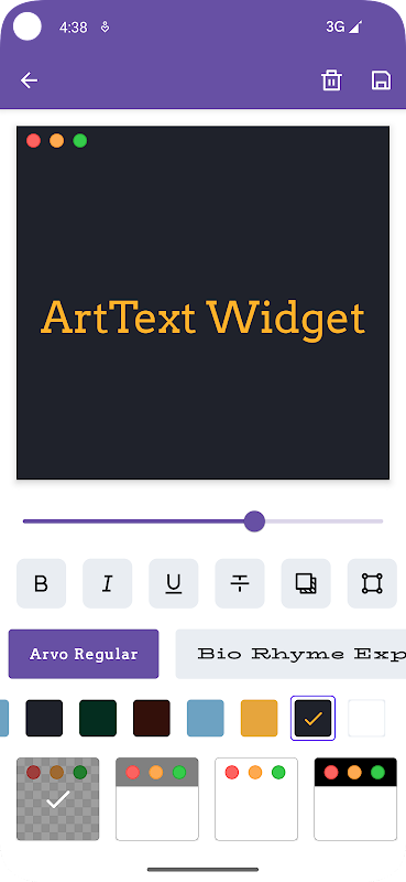 آرٹ ٹیکسٹ ویجیٹ ایک طاقتور ایپ ہے جو آپ کو آسانی سے اپنی ہوم اسکرین پر ذاتی نوعیت کے ٹیکسٹ ویجٹ شامل کرنے کی اجازت دیتی ہے۔ چاہے آپ متاثر کن اقتباسات، روزانہ کی یاددہانی، یا ذاتی نوٹس ڈسپلے کرنا چاہتے ہوں، ArtText ویجیٹ نے آپ کا احاطہ کیا ہے۔ آسان آپریشنز کے ساتھ، آپ منفرد ٹیکسٹ ویجٹ بنا سکتے ہیں جو بغیر کسی رکاوٹ کے آپ کی ہوم اسکرین کے ساتھ مل جاتے ہیں۔