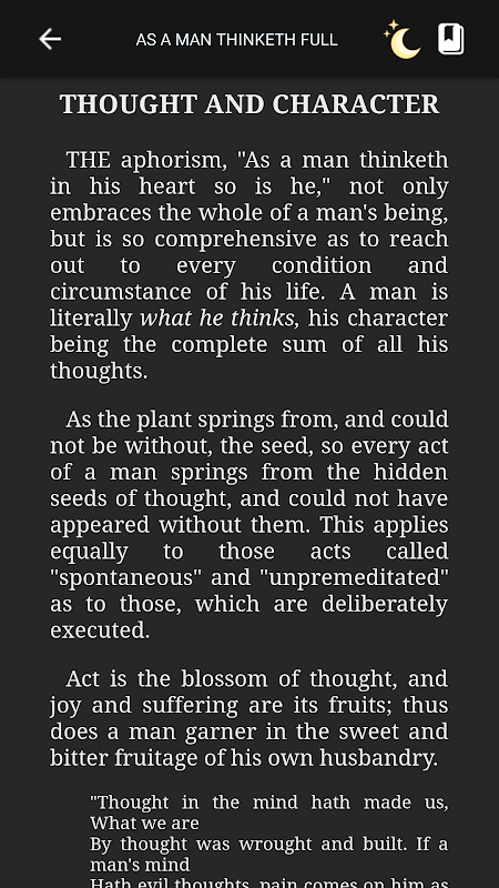 As A Man Thinketh is a book for Self Improvement by James Allen with night mode