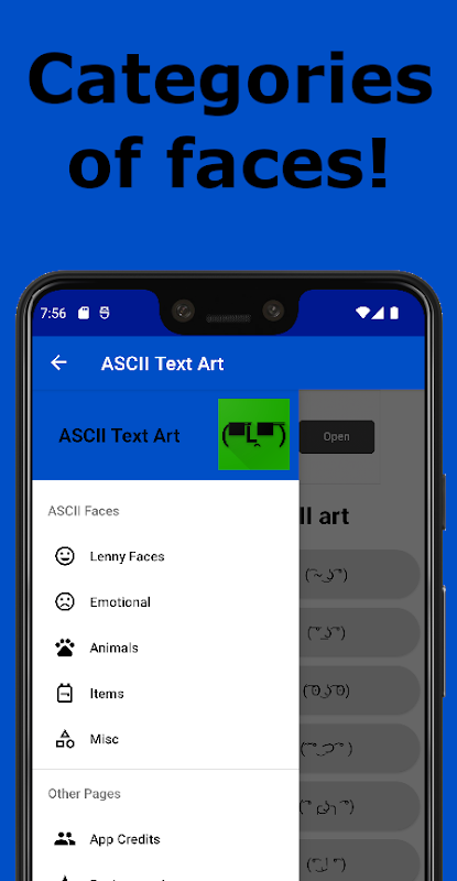 ASCII فیس آرٹ استعمال کرنے کا ایک آسان طریقہ! کاپی کرنے کے لیے بس تھپتھپائیں، اور اسے کسی پیغام یا متن کے کسی ٹکڑے میں چسپاں کریں! 40 سے زیادہ مختلف ASCII آرٹ چہروں میں سے انتخاب کریں! ایک بہت ہی آسان انٹرفیس ایپ کا استعمال پہلے سے کہیں زیادہ آسان بنا دیتا ہے!