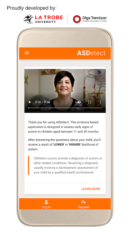 یہ ایوارڈ یافتہ ایپ** آسٹریلیا کی لا ٹروب یونیورسٹی میں اولگا ٹینیسن آٹزم ریسرچ سینٹر میں کی گئی جامع، سخت، عالمی سطح کی تحقیق پر مبنی ہے۔ اس ایپ کے تحت کی گئی تحقیق نے آٹزم کے ابتدائی پتہ لگانے میں 81% -83% درست ثابت کیا ہے۔