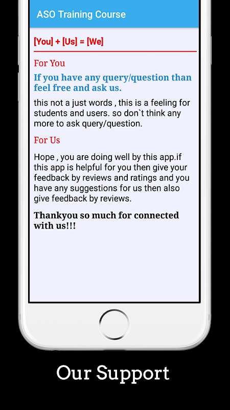 آپ ASO ٹریننگ کورس ایپ کے اندر پورے اسباق کو مفت میں استعمال کرسکتے ہیں اور اپنی ایپ سرچ انجن کی اصلاح کی صلاحیتوں کو زیادہ موثر اور مناسب بناسکتے ہیں۔