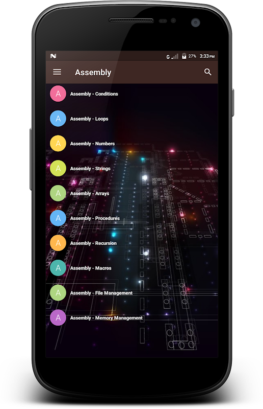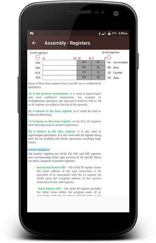 ► یہ ایپ ان لوگوں کے لئے تیار کی گئی ہے جو شروع سے ہی اسمبلی پروگرامنگ کی بنیادی باتیں سیکھنا چاہتے ہیں۔ یہ ایپ آپ کو اسمبلی پروگرامنگ کے بارے میں کافی حد تک تفہیم فراہم کرے گی جہاں سے آپ اپنے آپ کو مہارت کی اعلی سطح پر لے جاسکیں گے