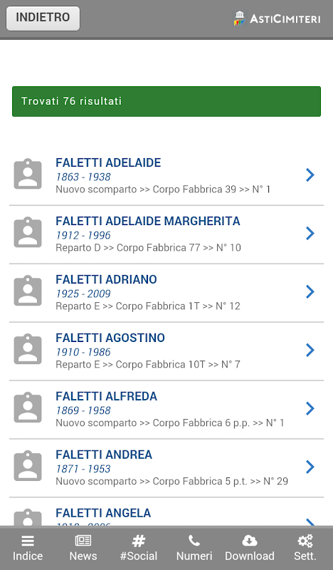 AstiCimiteri آپ کی انگلی پر ایک حل ہے کہ آپ اپنے پیارے ، ایک دور کے رشتہ دار ، Asti قبرستان میں ایک ممتاز شخصیت کی تلاش کریں۔