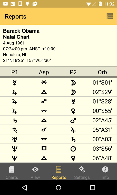 ایپ صاف ، صاف اور عین مطابق ہے اور اس میں تازہ ترین سوئس ایفیمیرس اور اے سی ایس اٹلس فائلوں کا استعمال کیا گیا ہے۔