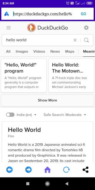 . سب سے چھوٹا اور محفوظ ترین براؤزر 2. ڈیفالٹ سرچ انجن ڈک ڈکگو