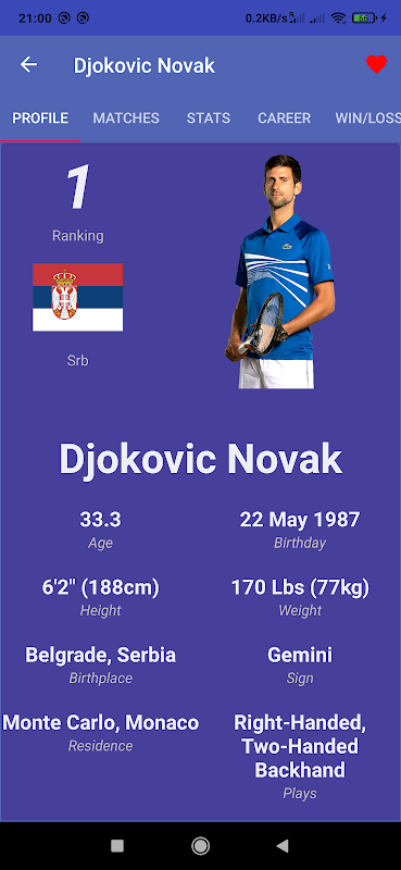 ٹینس کے مداح کی حیثیت سے ، میں ایک ایسی ایپ چاہوں گا جس میں ٹینس میچوں کے ٹائم شیڈول ، کھلاڑیوں کے لئے ٹورنامنٹ کی معلومات ، ڈرا ، شماریات ، لائیو رینکنگ کے ساتھ بہترین صورت حال ، براہ راست میچ کی تفصیلات اور پلیئرز کے پروفائل کی معلومات کو ایک ہی کلیک کے ساتھ جوڑ دیا جائے۔