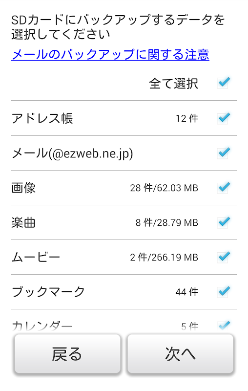 au以外のスマートフォンをご利用の方はSDカードへのバックアップ機能のみご利用いただけます。