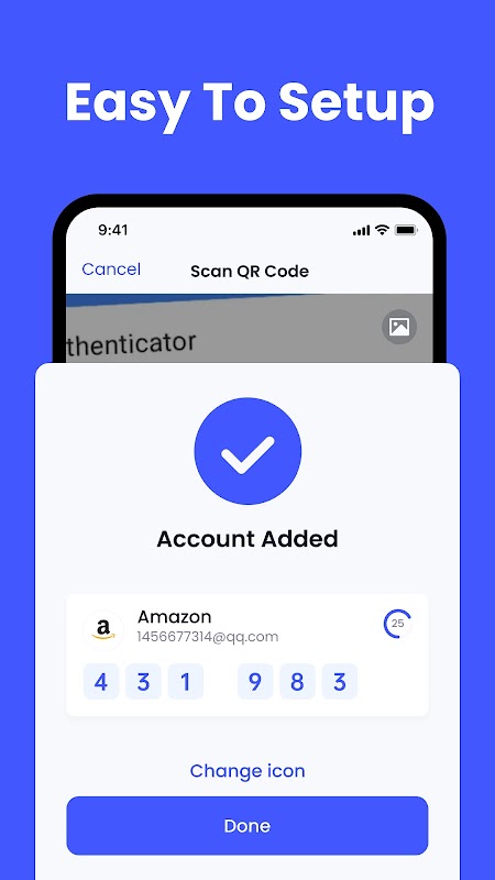 QR کوڈ کو خودکار طور پر اسکین کریں یا انہیں دستی طور پر درج کریں، اور اپنے لاگ ان کے لیے 2FA/MFA تصدیق کو فعال کرنے کے لیے وقت پر مبنی ون ٹائم پاس ورڈز (TOTP) حاصل کریں۔