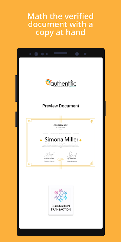 مستند دستاویز کی تصدیق کرنے والی موبائل ایپ بلاک چین سے محفوظ دستاویز کے وصول کنندگان کو دوسرے فریقوں کے ساتھ ان کی اسناد کے وجود اور صداقت کو ثابت کرنے میں مدد کرتی ہے۔