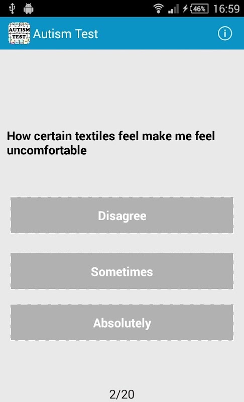 Our Autism test will guide you through a series of statements and in the end you'll find out what's the chance of you having an Autism.