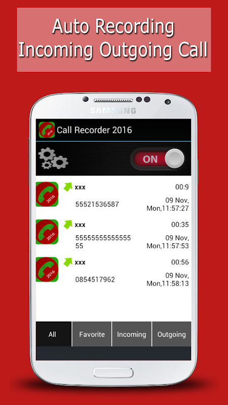 Auto Call Recording Pro 2016 its Recording a phone call and out as you want and choose which calls you want to record. You can adjust the calls are recorded and which are ignored. Listen to the recording.