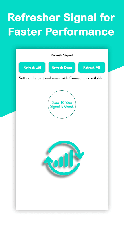 بنیادی طور پر یہ ایپ سگنل کو مخصوص تعداد میں ریفریش کرتی ہے جب تک کہ کوئی اچھا سگنل نہ مل جائے۔ بہترین نیٹ ورک سگنل حاصل کرنے میں آپ کی مدد کرنے کے لیے۔ اس ایپ میں ایک بٹن ہے جو آپ کے موبائل نیٹ ورک کو ریفریش اور آپٹمائز کرے گا اور انٹرنیٹ اسپیڈ آٹو سگنل نیٹ ورک ریفریشر آپ کو تیز ترین نیٹ ورک سے جوڑ دے گا جو آپ کے موبائل نیٹ ورک اور انٹرنیٹ کی رفتار کو بہتر بنائے گا۔ یہ ایپ آپ کے نیٹ ورک سگنل کے ان تمام مسائل کو حل کرنے میں مدد کرے گی جن کا آپ کو سامنا ہو سکتا ہے۔
