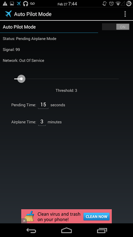 The phone will expend a lot of battery searching for a signal to use. Auto Pilot Mode prevents this from happening by automatically enabling Airplane Mode for a specified amount of time when the signal falls below a threshold.