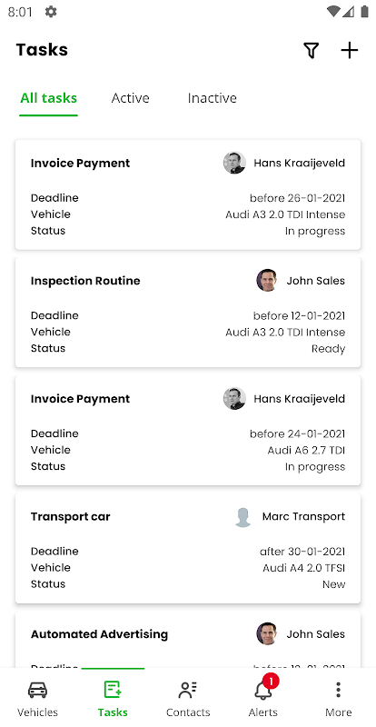 Insight into the overall Workflow. Also insight per car which activities need to be handled. Your own, unique, Automotive Workflow transparent via the App.