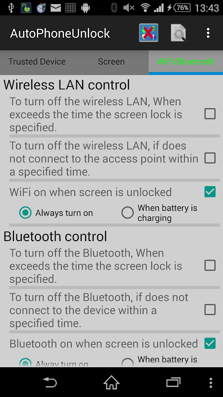 (3) Turn on the wireless LAN and Bluetooth when screen was unlocked.