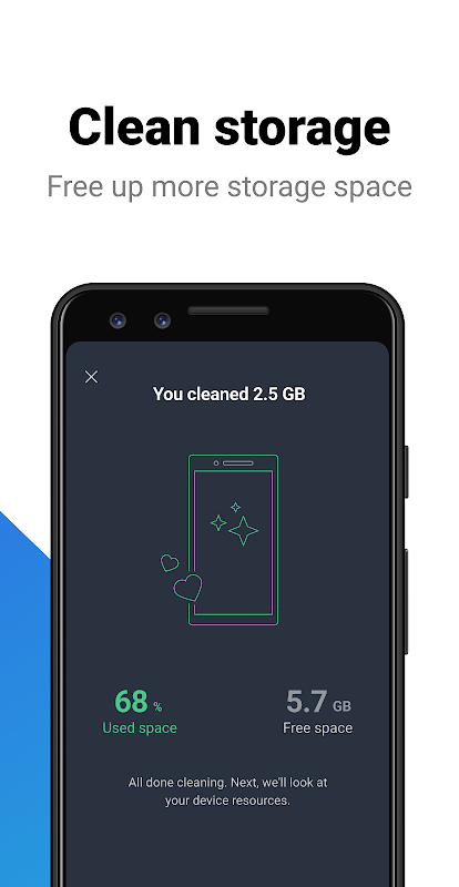 Clean your phone to free up storage space. Eliminate junk, delete bad quality, similar or duplicate photos to make more storage space available for the apps, photos, and other stuff you want.
