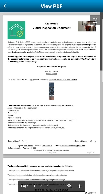 App to record,save & share visual inspection during buying/selling properties.