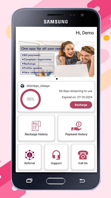 - *اپنے منصوبے کی تجدید:* صرف چند ٹیپس کے ساتھ آسانی سے اپنے انٹرنیٹ پلان کی تجدید کریں۔