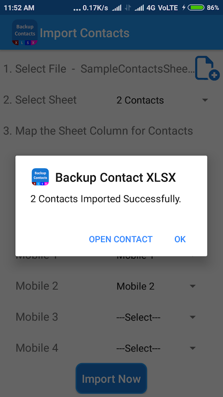 کے پرانے ورژن Backup Contact To XLSX ( Impor