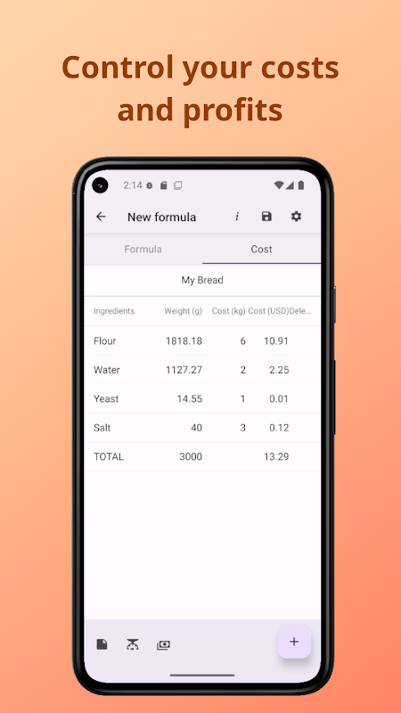ترکیب کا انتظام: اپنی بیکری کی ترکیبیں بنائیں، محفوظ کریں اور ان میں ترمیم کریں تاکہ وہ ہمیشہ ہاتھ میں رہیں۔