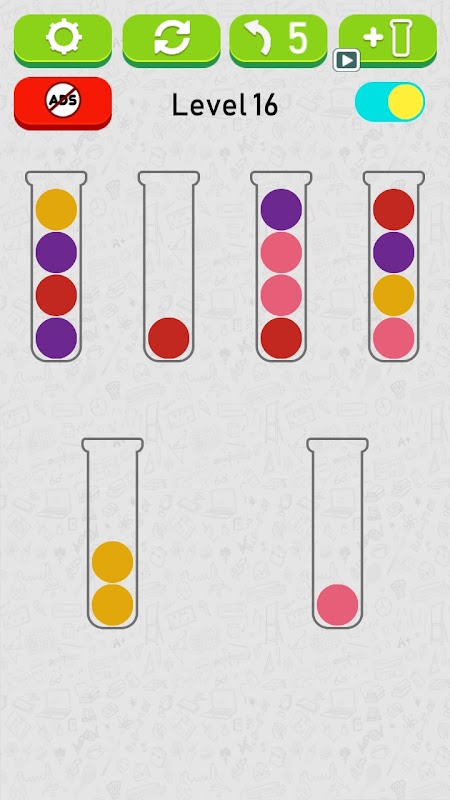 A color sorting game, is a fun and relaxing game that entertains and stimulates your brain. Sort the colored balls in the tubes until all the same colors are together in the same tube