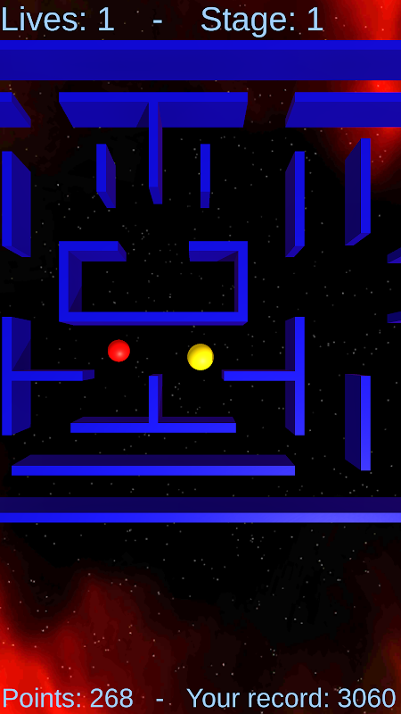 Control the ball through the labyrinth in the style of Pac-Man. Collect all objects and fight against your pursuers. Control either by wiping movements on the display, or activate the arrow keys.