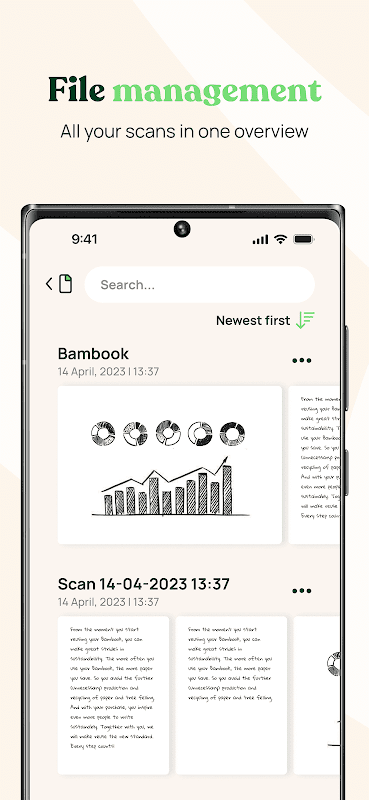 نام دینے، چھانٹنے اور بیچ سکیننگ جیسی خصوصیات کے ساتھ اپنے ڈیجیٹائزڈ نوٹوں کو ترتیب دینے میں آسانی سے لطف اٹھائیں۔ ایپ بدیہی اور صارف دوست ہے، عمل کو ہوا کا جھونکا بناتی ہے۔