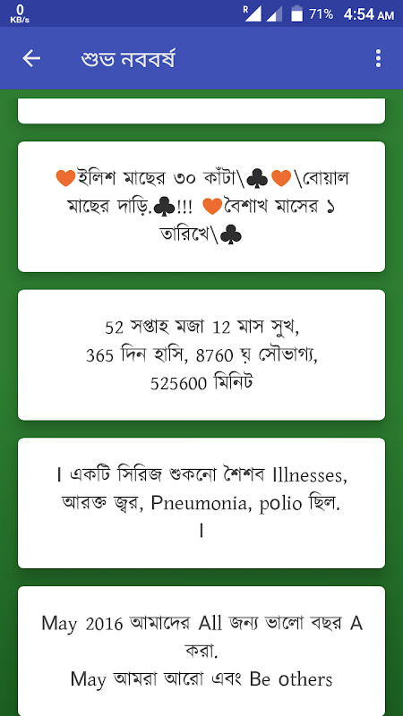 بہت سی قسمیں ہیں ، ہمارے پاس اس ایپ میں کل 30 ہزار سے زیادہ بنگلہ ایس ایم ایس ہیں۔