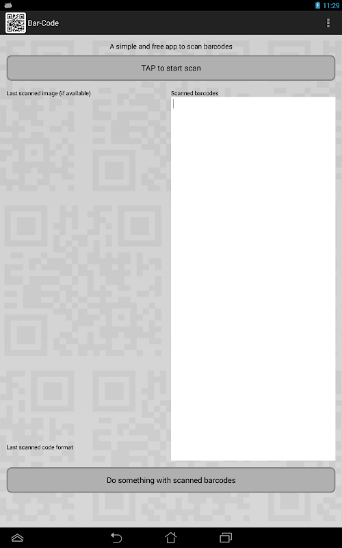 جب بار کوڈ کا پتہ لگ جائے گا تو اس کے چاروں طرف سبز رنگ مربع ہو جائے گا اور اس کو ڈی کوڈ کرکے "کوڈ اسکینڈ" فہرست میں لکھا جائے گا۔