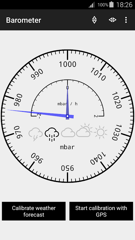 Operation is based on integrated barometric pressure sensor. Barometer is mostly used for weather forecast while altimeter helps to measure altitude, but feel free to use your imagination when using this application.