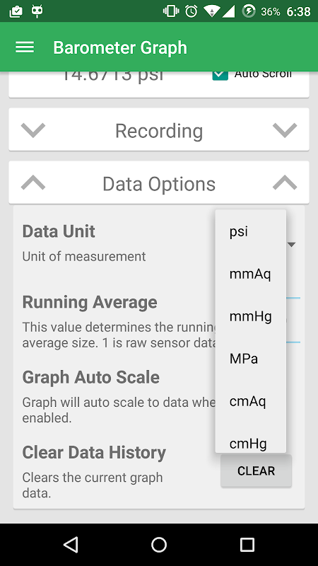 Graph, Filter, Record, and Export barometric pressure data in real time