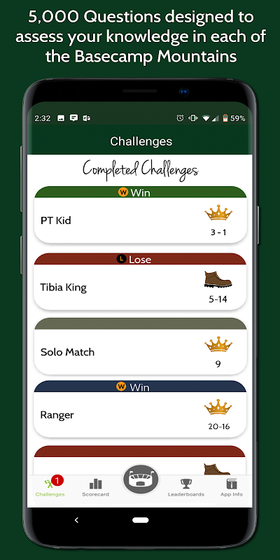 ارینا ایپ موجودہ بیس کیمپ صارفین کو کسی بھی وقت اور کہیں بھی ، ہمارے مسابقتی کھیل کنگ آف ماؤنٹین اور چڑھنے کا استعمال کرنے کی اجازت دیتی ہے۔ سولو موڈ میں کھیل کھیلو یا ہم جماعت کی طالب علموں کو جنگ کی جنگ میں للکارا۔ اجتماعی طور پر ، دونوں گیم موڈز 5،000 سے زیادہ سوالات پیش کرتے ہیں جو طلبا کو طویل مدتی یادداشت کے لئے اہم بنیادی علمی مشمولات کا ارتکاب کرنے میں معاون ہیں۔ سوالات کو پانچ انوکھے پہاڑوں (یعنی ، Musculoskeletal ، نیوروومسکلر ، کارڈیو پلمونری ، دوسرے سسٹمز ، نان سسٹمز) میں پیش کیا گیا ہے۔ کھیل مطالعے میں مسابقتی پہلو شامل کرتے ہیں اور سیکھنے کے ساتھ ہی طلبہ کو پوری طرح شامل کرتے ہیں۔ دیکھیں کہ آپ مقابلہ کو کس طرح ڈھیر رکھتے ہیں! طلباء ایرینا - اسکورکارڈ اور لیڈر بورڈ کا استعمال کرکے اپنے کارکردگی کا ڈیٹا تلاش کرسکتے ہیں۔ میدان میں جمع کردہ ہم آہنگی کے اعداد و شمار کو مستقبل میں علاج معالجے کی ہدایت کے لئے استعمال کیا جاسکتا ہے۔ ان پیدل سفر کے جوتوں کو سجانا اور کھیل شروع کرنے دو!