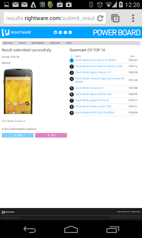 你也可以登录Rightware 的官方数据库网站 (名为Power Board) 查看和比较其它手机及平板的得分情况。Power Board手机超过 1500台设备的测试信息。http://results.rightware.com/