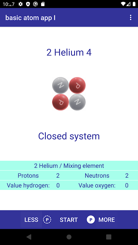 With the Basic Atom App, the atomic structure of the elements can be realistically reproduced. For this, the oppositely rotating protons and neutrons are displayed with the app. Since the nucleons are built up in a planar manner in reality, displaying them on a flat monitor is ideal. In contrast to reality, the rotation speed of the nucleons is extremely slowed down so that the direction of rotation of each individual nucleon can be traced. In reality, the speed of rotation corresponds to a speed faster than light.