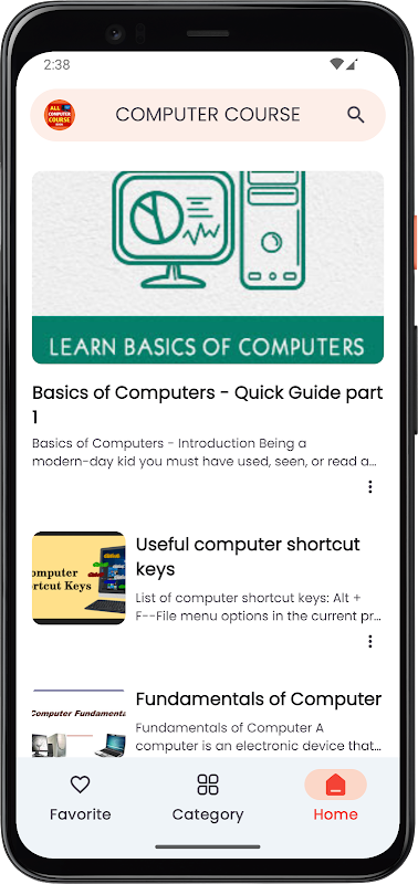 بنیادی کمپیوٹر کورس ایپ کی بنیادی خصوصیات۔