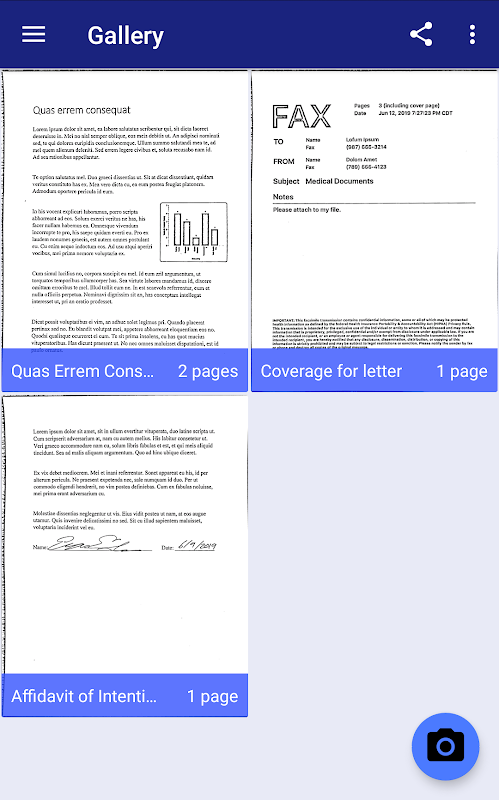 دستاویزات کو پی ڈی ایف، فیکس، ای میل، یا گیلری میں محفوظ کیا جا سکتا ہے۔