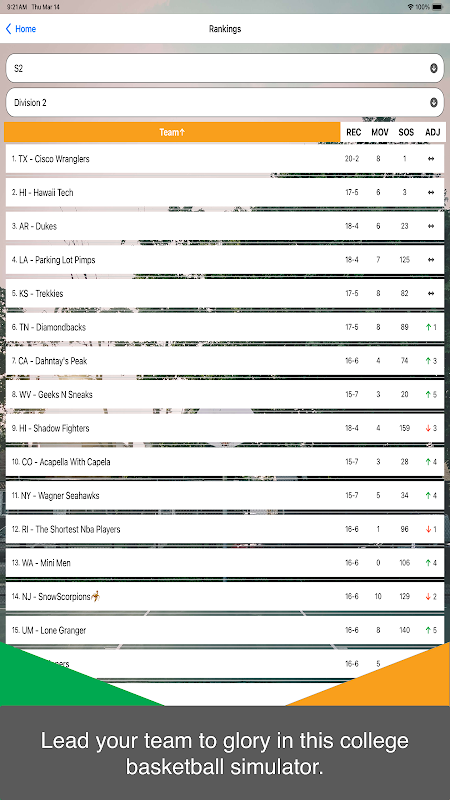 1️⃣ ایک لائن اپ سیٹ کریں: بہترین سٹارٹنگ لائن اپ کو جمع کر کے اپنی کوچنگ اور انتظامی صلاحیتوں کی جانچ کریں۔ اپنی کالج کی باسکٹ بال ٹیم کو فتح کی طرف لے جانے کے لیے حکمت عملیوں اور فارمیشنوں کو ایڈجسٹ کریں۔