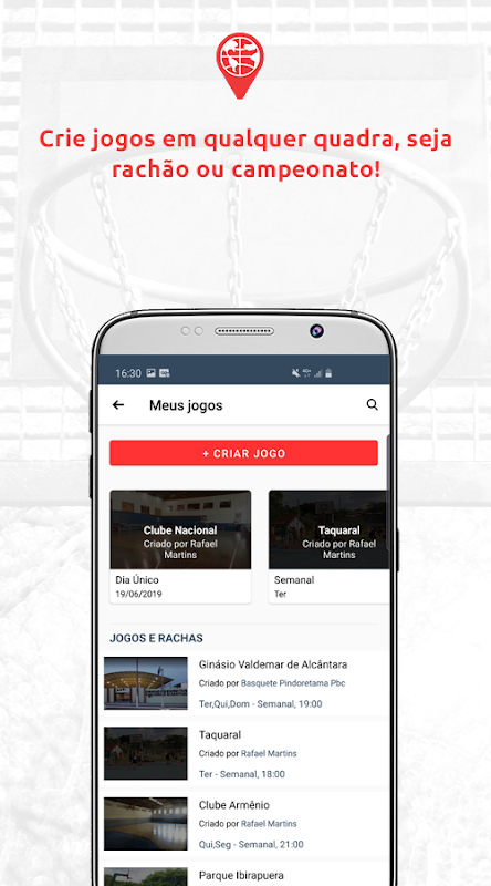 باسکٹف پورے برازیل میں باسکٹ بال عدالتیں تلاش کرنے کے لئے آپ کی درخواست ہے۔ شطرنج کی گیندوں اور دراڑوں کے بارے میں معلوم کریں ، کھلاڑیوں اور دوستوں کی مقبول ترین سرگرمیاں دیکھیں ، عدالتوں کی درجہ بندی کریں اور باسکٹ بال سے باسکٹ بال سے اپنے رابطے کو بہتر بنانے میں مدد کریں ، خواہ وہ شوقیہ ہو یا پیشہ ور۔