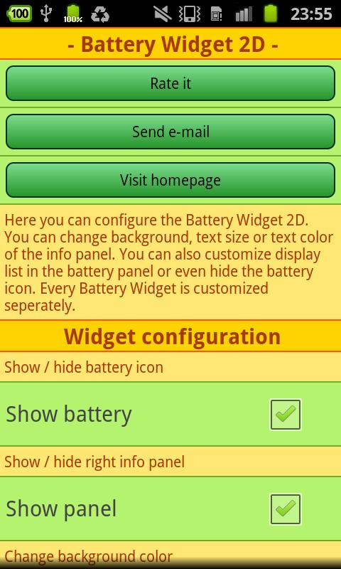 Clear, very easy to read, beautiful battery widget in 2D which provides you a lot of information about battery installed in your phone.